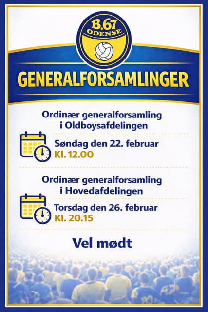 Oldboysafdelingen og Hovedafdelingen holder ordinær generalforsamling d.22 og 26 februar